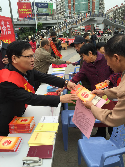 12月4日,福建金磊律师事务所青年律师罗伟、邱媛媛等在主任黄家焱的带领下,前往龙岩街心广场开展“12.4”法制宣传日活动,发放宣传材料420多份,法律咨询30多人(次)。自2001年中共中央、国务院决定将我国现行宪法实施日12月4日作为每年的全国法制宣传日以来,金磊律师事务所的律师们一年都没有落下,至今连续15年开展该活动。
