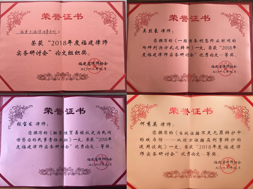 我市律师在“2018年度福建实务研讨会”斩获优异成绩