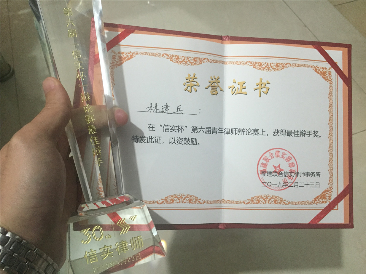 信实龙岩分所林建兵荣获“信实杯”第六届青年律师辩论赛最佳辩手奖