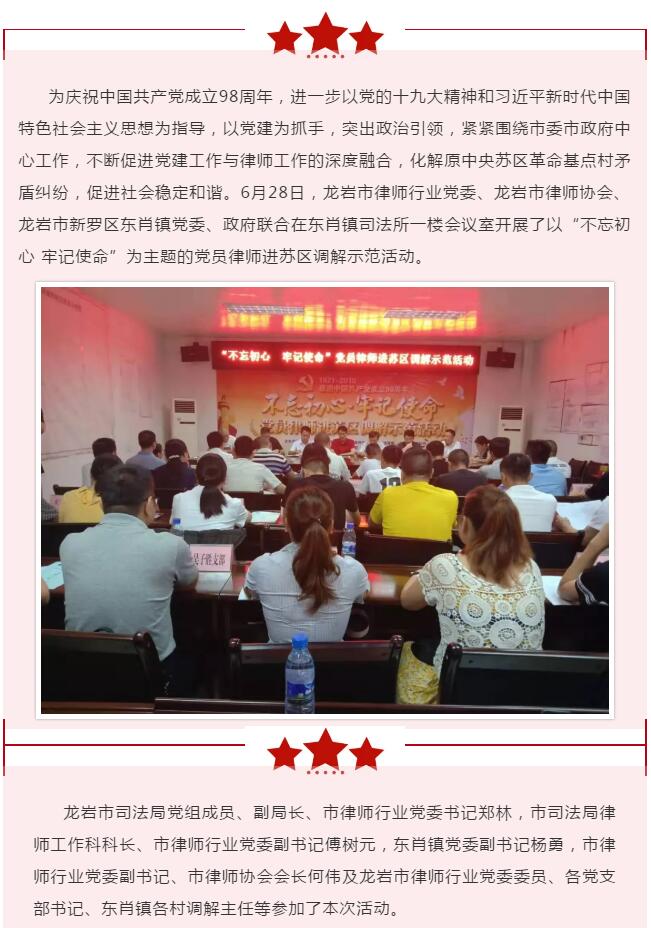致敬七一| 龙岩市开展“不忘初心 牢记使命”党员律师进苏区调解示范活动