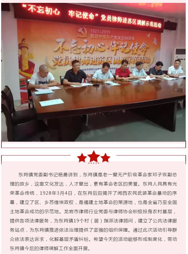 致敬七一| 龙岩市开展“不忘初心 牢记使命”党员律师进苏区调解示范活动