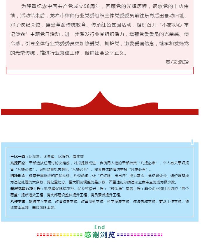 / 党建工作/ 致敬七一| 龙岩市开展“不忘初心 牢记使命”党员律师进苏区调解示范活动