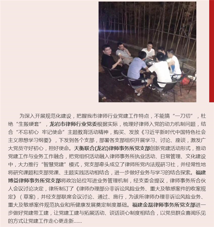 龙岩市律师行业党委党建规范化“回头看”工作正在积极推进中