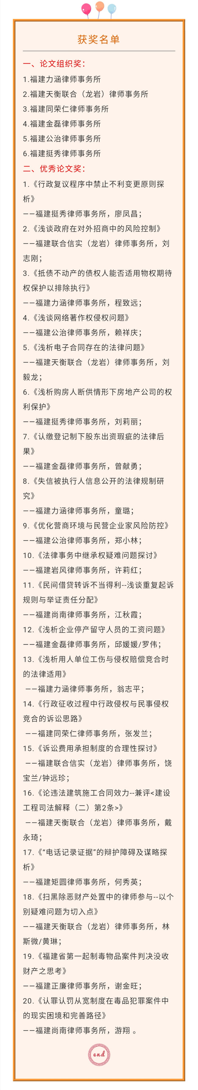 闭幕式上杜国长副会长代表市律协宣读了由市律协教育培训委员会评出的20篇优秀论文和作者名单以及6家论文组织奖获奖单位,并对优秀论文作者及组织单位进行了表彰。