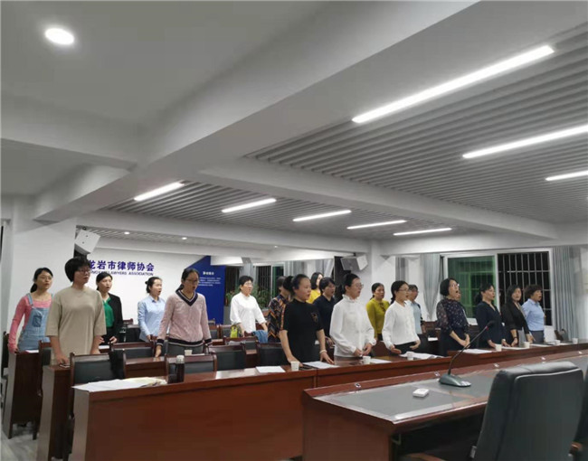 为提升龙岩市女律师综合实力、社会认可度、知名度、美誉度,打造女律师品牌,实现女律师群体产生“精神共鸣”,市律协女工委在省、市两级律协的大力支持下,于2019年8月正式组建一支女律师合唱团,以探索创建龙岩市女律师品牌活动。该合唱团由23名来自本市不同律师事务所的女律师自愿报名组成。自2019年10月中上旬起,女律师合唱团固定于每周二晚上在进行两小时的练歌活动,当前已完成第四期排练。经过专业老师的指导,合唱团成员已掌握了基本的声乐理论,知晓合唱中应如何规范调整自己的发声、呼吸等,理解了哼鸣练习及团队共鸣的重要意义,演唱水准逐步提升。