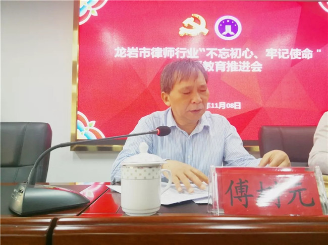 会议上,市律师行业党委副书记、龙岩市司法局律工科科长傅树元回顾总结了律师行业主题教育开展情况,对下一步工作进行了安排部署。