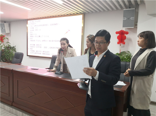 随后,大会导演组向大家介绍了大会的流程和节目安排。庆祝大会分为回首、成长、传承、展望四大篇章,隆重纪念伟大的祖国成立70周年和律师制度恢复40周年,表彰先进、树立榜样。中间穿插歌、舞、诗朗诵、情景剧等节目。节目主要由我市年青律师、实习律师和律所工作人员担纲表演,导演组负责编导、排练、大会执行,全过程指导和制作,以求更好地体现全市律师的精神风貌,彰显新时代龙岩律师行业的朝气与蓬勃。