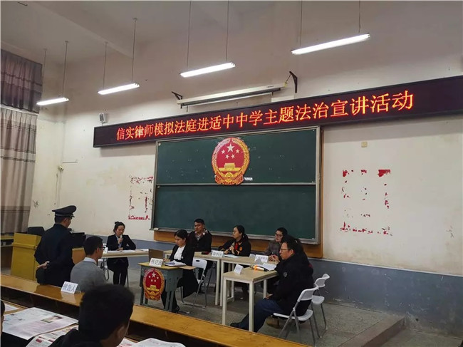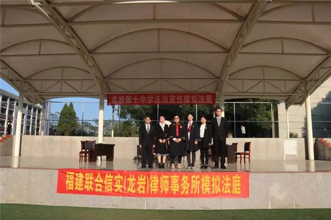 12月2日,福建联合信实(龙岩)律师事务所受龙门镇司法所邀请到龙岩市第十中学举办法治进校园“模拟法庭”活动。党员律师吴凯凯、林桂红、林天文等7人以案释法,模拟庭审现场,宣传法律知识。龙岩市第十中学两百余名师生零距离旁听了模拟庭审。模拟法庭教育课堂,受到了全校师生的积极欢迎。