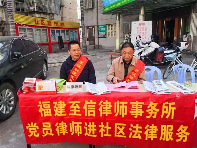 12月3日、4日福建至信律师事务所党支部组织全体党员开展“送法下基层、普法暖民心”主题党日活动,来到苏溪社区、登高社区、大同社区进行公益法律服务,走进苏溪小学开展公益普法活动,以实实在在的行动响应总书记“不忘初心、牢记使命” 的号召。