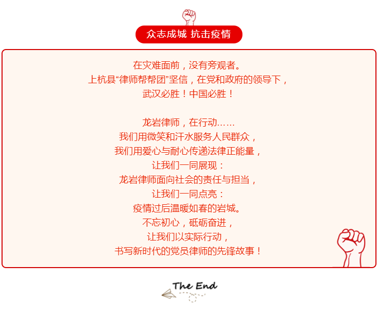 / 党建工作/ 抗击疫情,上杭县律师联合党支部在行动