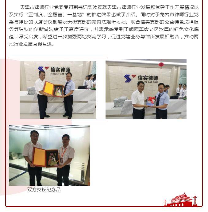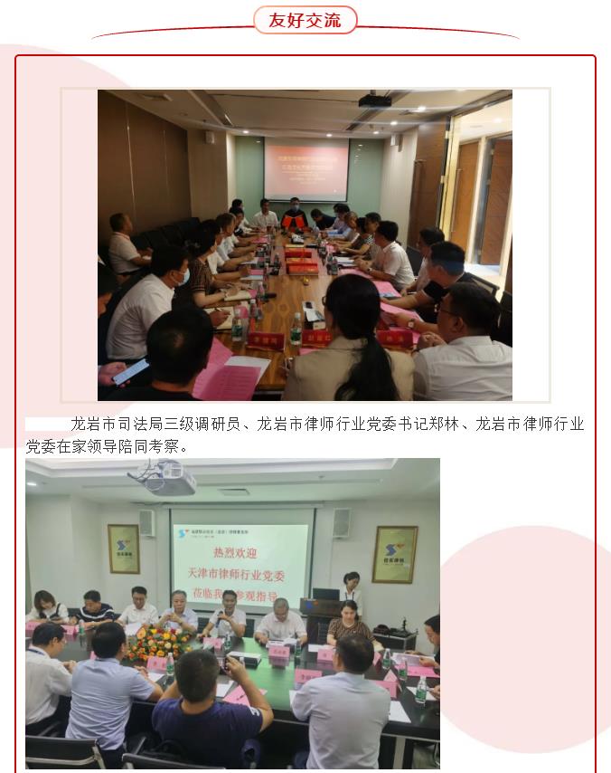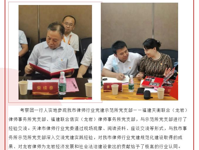 天津市律师行业党委赴龙岩律师事务所党支部交流考察