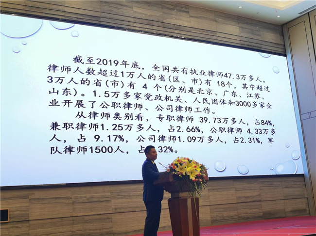 讲座中,王教授还通过司法部政府网《2019年度律师、基层法律服务工作统计分析》数据向全市律师展示全国执业律师情况。截至2019年底,全国执业律师47.3万多人,其中专职律师39.73万多人,占比84%,兼职律师1.25万多人,占比2.66%,公职律师4.33万多人,占比9.17%,公司律师1.09万多人,占2.31%,军队律师1500人,占0.32%。从年龄结构看,30岁(含)至49岁的律师30.27万多人,占比64%,以上数据说明律师行业是个充满生机朝气蓬勃呈发展趋势的行业。王教授对青年律师寄予恳切的期望,鼓励青年律师利用相对充裕的时间,在执业初期沉下心刻苦钻研,夯实业务基础,更要守初心热情奉献,承担社会责任,真正实现“弯道超车”让自己成为行业翘楚。