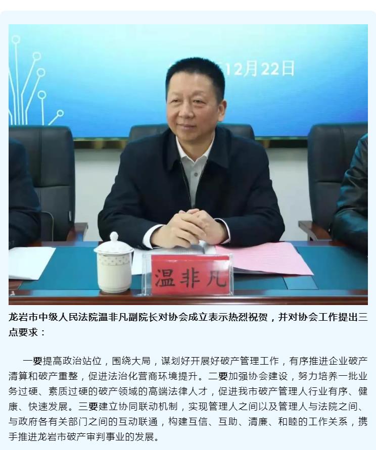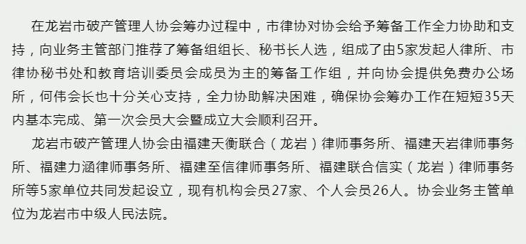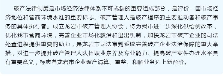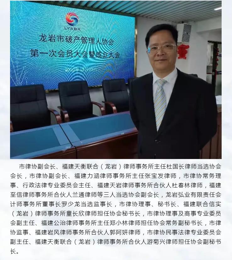 / 律界动态/ 市律协全力支持!龙岩市破产管理人协会成立大会顺利召开,杜国长律师当选首任会长!