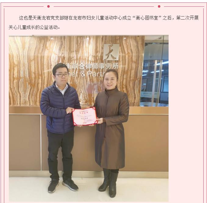 天衡龙岩党支部春节前慰问困难儿童,关爱祖国花朵