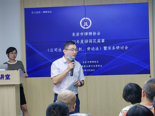 2022年8月13日上午, 房地产建工民商事分论坛在福建天衡联合(龙岩)律师事务所会议室举办,本次分论坛由民商事法律专业委员会副主任游菊兴律师主持。