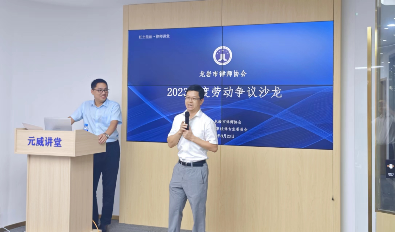 2023年8月23日晚,耀彩网民商事法律专业委员会在福建元威律师事务所会议室举办了红土法治.律师讲堂——劳动争议沙龙活动。本次活动由民商委副主任——福建金磊律师事务所罗伟律师主讲,民商委主任戴永琦主持。