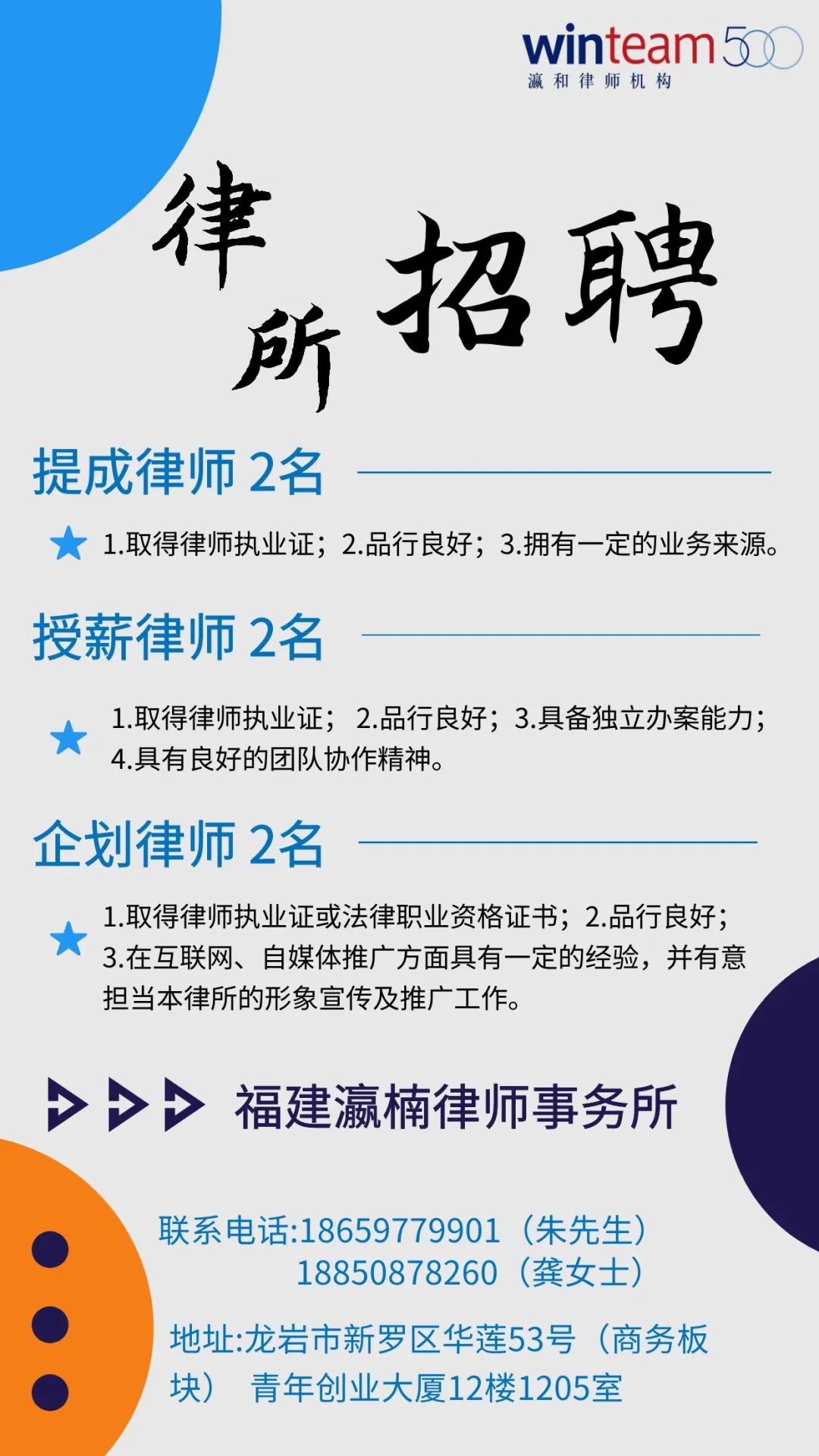 招聘|福建瀛楠律师事务所招聘