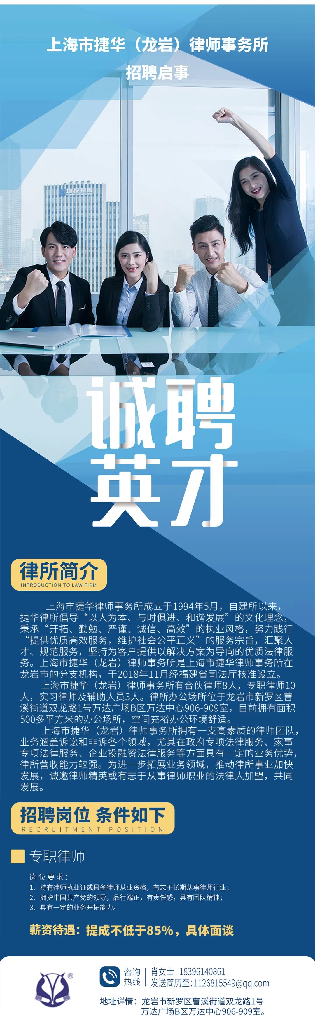 / 律界动态/ 律所招聘|上海市捷华(龙岩)律师事务所招聘启事